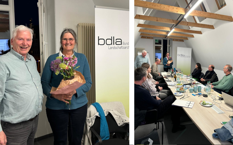 Darüberhinaus wurde sie von Michael Klisch im Namen des Gesamt-Vorstands und der anwesenden Mitglieder für ihre 30-jährige Mitgliedschaft im bdla geehrt. Diese Ehrung fand im Rahmen der Mitgliederversammlung 2026 statt.