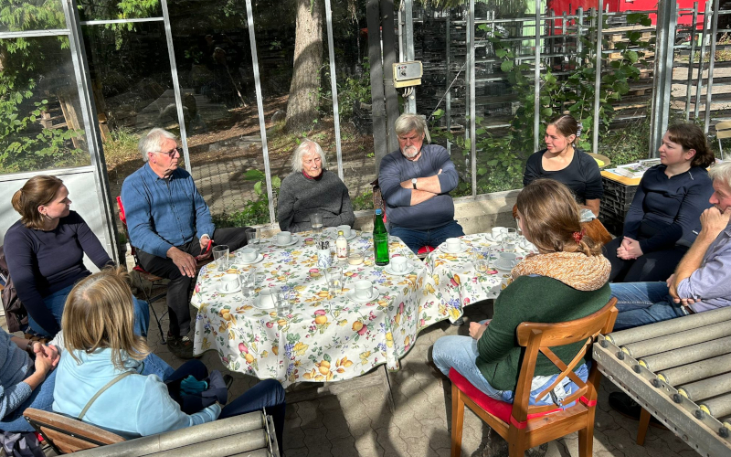 Im runden und gemütlichen Kreis gab es abschließend bei Kaffee, Tee und Keksen Raum für weitere Fragen, Diskussion und Austausch. Insgesamt war sich die Runde einig, dass Stauden im öffentlichen Raum eine Renaissance erfahren, die sich auch in vermehrt nachgefragten, ausgewiesenen Pflanz-Expert:innen, selbständig oder angestellt, niederschlägt. In diesem Zusammenhang wurde dann die Frage an die anwesenden jungen Studierenden bzw. Absolvent:innen aus den verschiedenen Hochschulen gestellt, welchen Stellenwert Gehölz- und Staudenverwendung gegenwertig auf den jeweiligen Lehrplänen hat – „Einen deutlich zu geringen!“ war das allgemeine Urteil, wobei allen Beteiligten auch bewusst ist, wie schwierig eine gute, praxisnahe und nachhaltig wirksame (im Sinne: es bleibt was hängen!) Lehre in der Pflanzenverwendung ist.