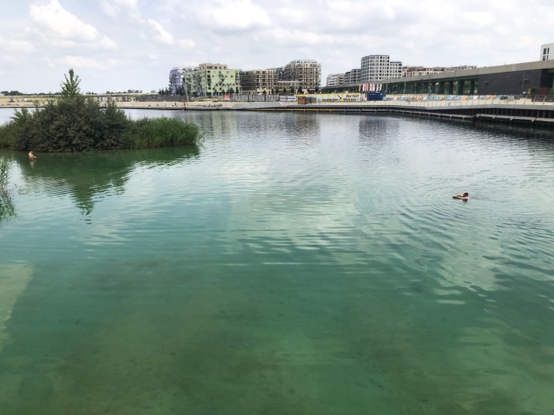 Zum Beispiel in der seit 2010 wachsende Seestadt Aspern, die aufschlussreich Zeugnis gibt von dem Paradigmenwechsel in der Landschaftsarchitektur: Je nach Bauabschnitt stehen breiten Straßen mit (zu) wenig Grün kühle Wohninnenhöfe mit Aufenthaltsqualität und die praktizierte Schwammstadt gegenüber. Der glasklare Grundwassersee wird zukünftiges Zentrum einer hoffentlich grünstmöglichen Seestadt.