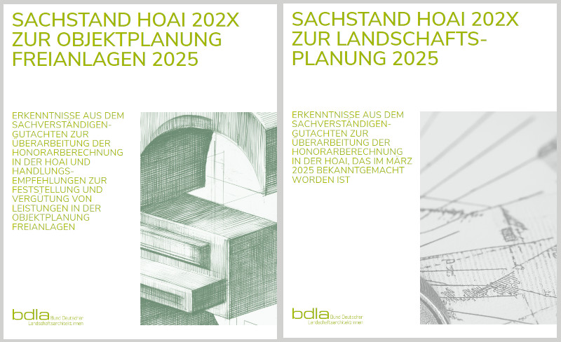 Der Bund Deutscher Landschaftsarchitekt:innen bdla hat zwei Broschüren zum Sachstand der HOAI-Novelle vorgelegt. Damit werden Hinweise für eine angemessene und auskömmliche Honorierung für Objektplanung Freianlagen und für die Landschaftsplanung gegeben.